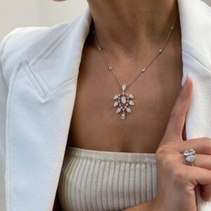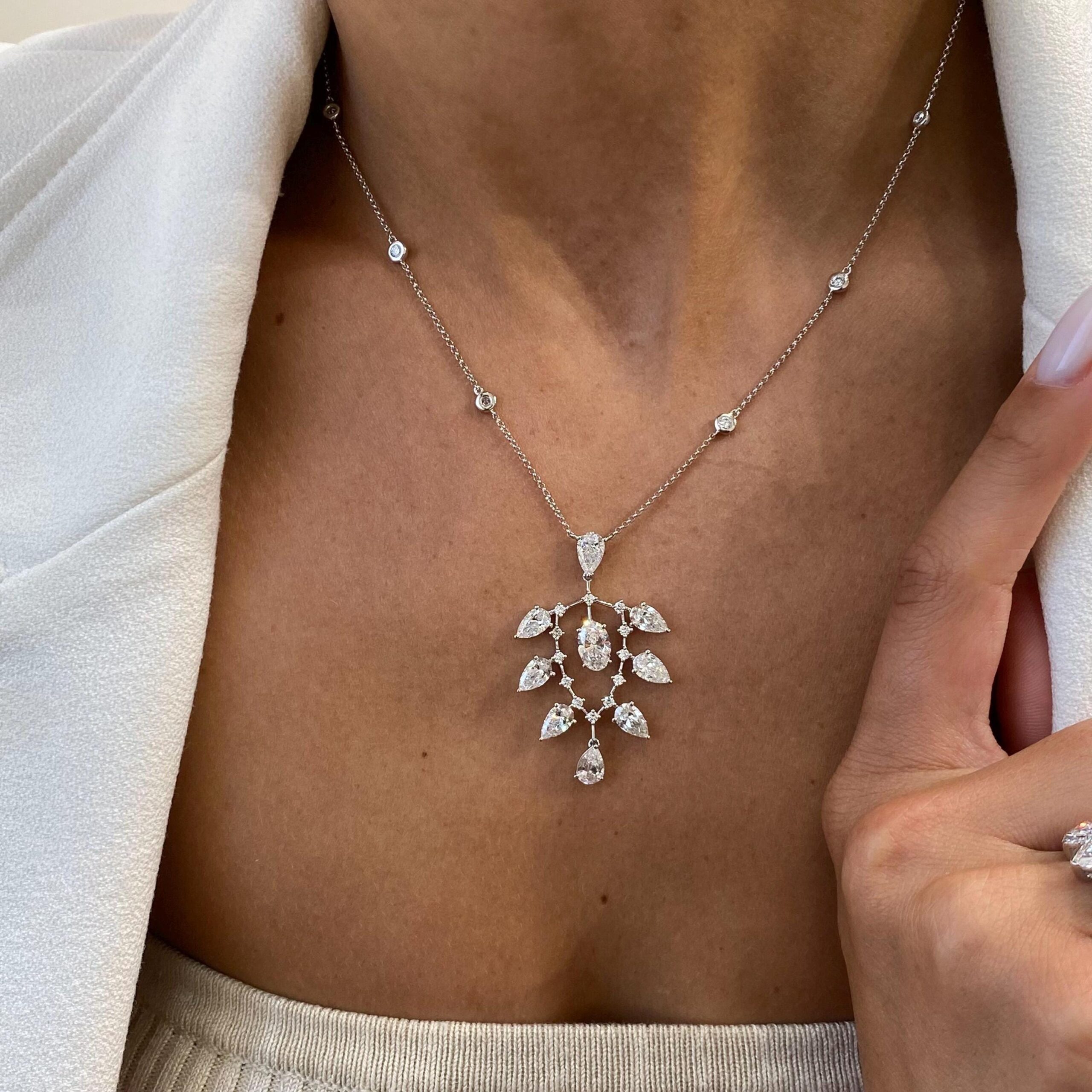 Mix shape diamond 4.95 ct pendant necklace, glamorous e/vvs2 cvd diamonds, white gold 14k exquisite design eco diamonds necklace